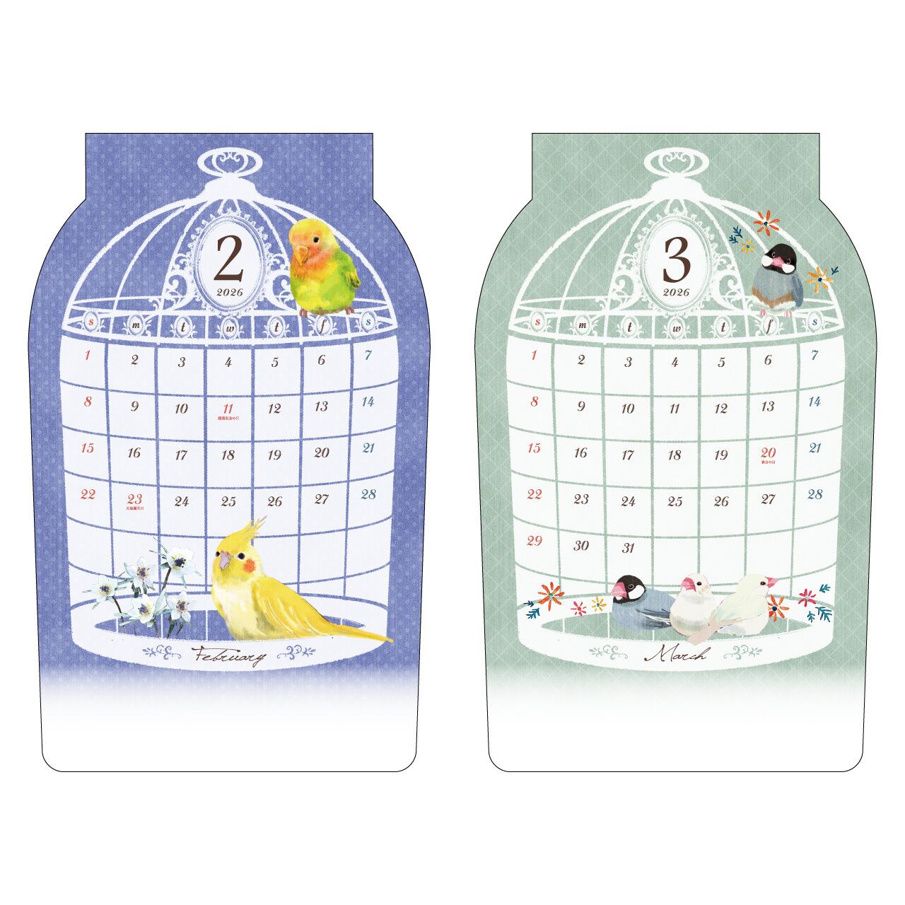 かわいい鳥のイラストが入ったカレンダーです。お部屋のインテリアとしても飾れます。