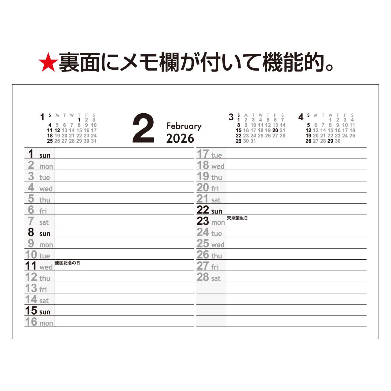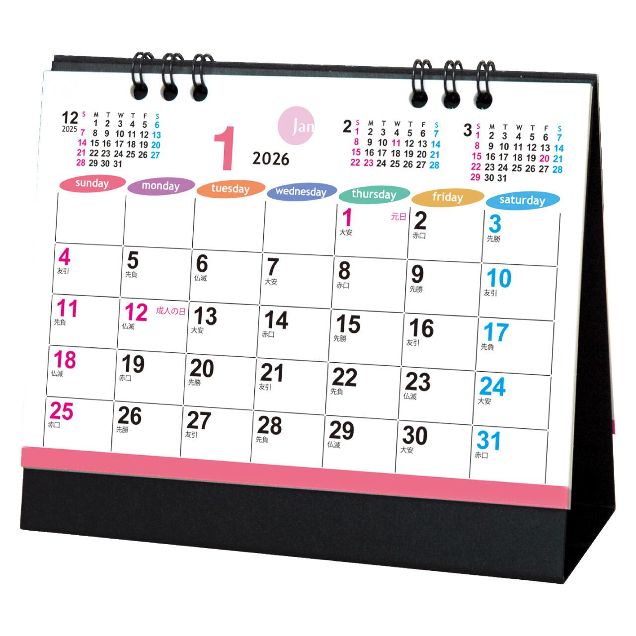 上品なペールカラーで展開する、機能的な卓上カレンダー。台紙スタンド型の機能的な卓上カレンダーです。裏面には、スケジュールを書き込めるメモ欄もあり実用的です。