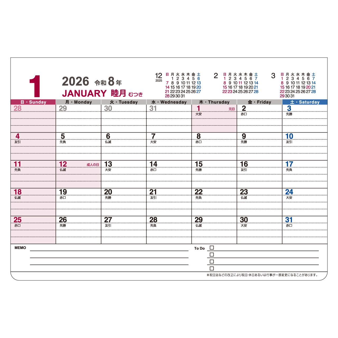 ※法改正により、祝日の名称、休日が変更になる場合があります。