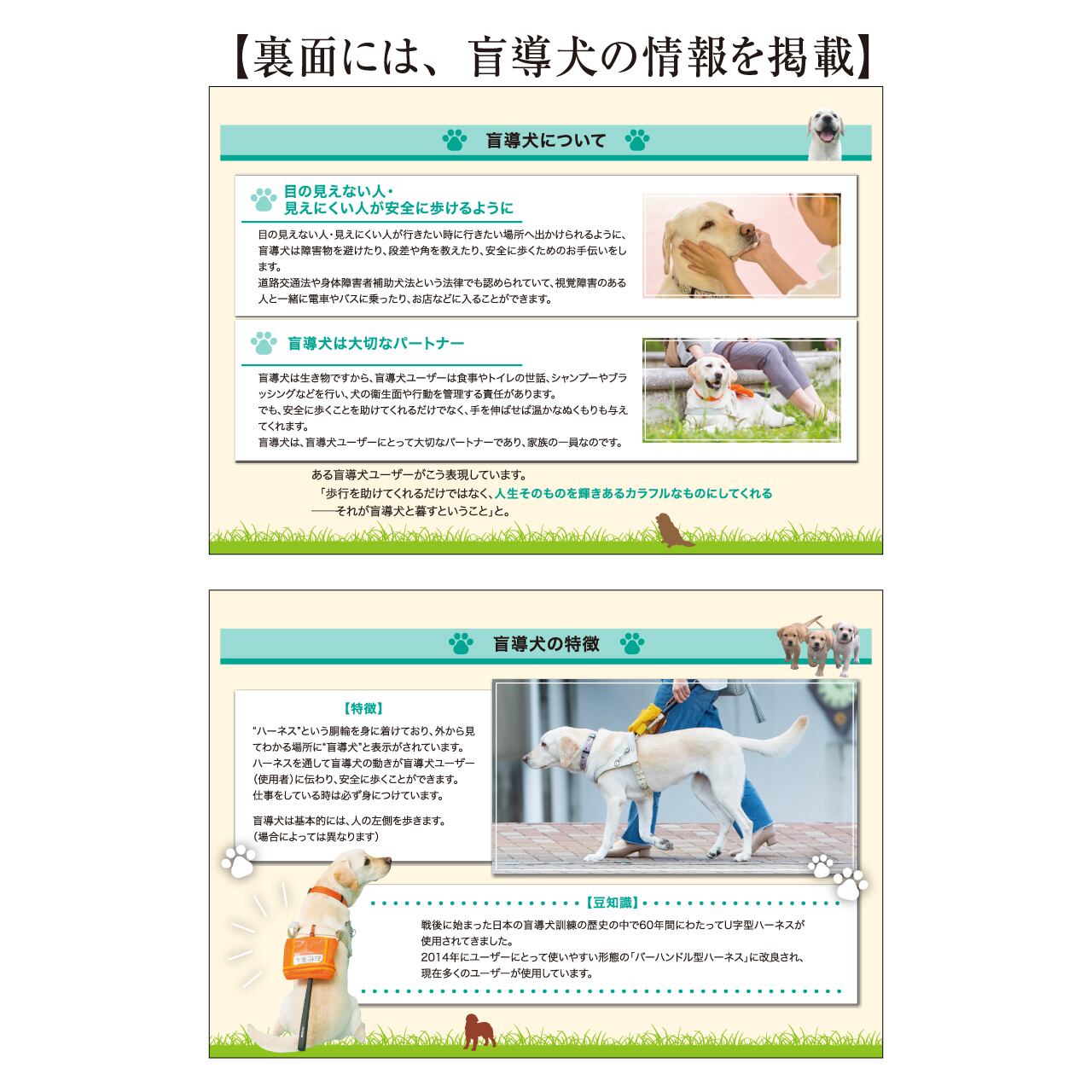 シンプルなデザインでメモ書きもしやすい卓上カレンダーです。一目でわかる年表が台紙に入っています。裏面には、盲導犬についての啓発活動を掲載しています。売上の一部が日本盲導犬協会の活動資金として寄付されます。