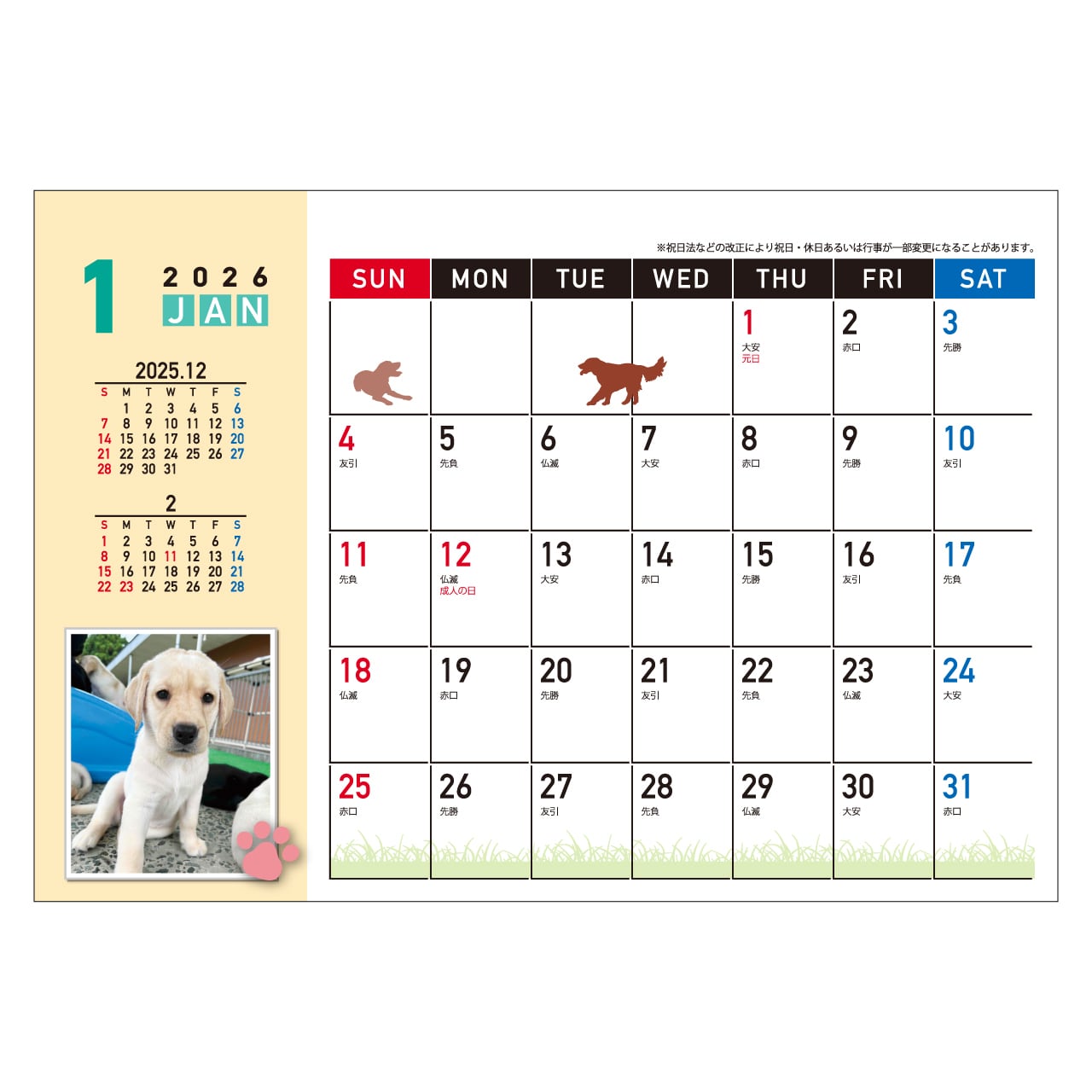 ※法改正により、祝日の名称、休日が変更になる場合があります。